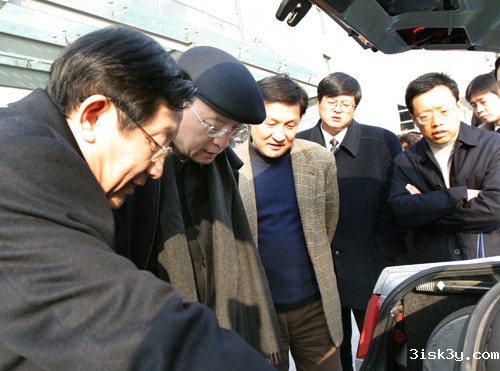 日前,国家开发银行行长陈元来我校考察,了解我校'863'项目'燃料电池汽车'科研进展情况。 我校校长、国家863电动汽车重大专项首席科学家万钢教授向陈元介绍了我校燃料电池轿车的研发进展和产业化进程,陪同察看了电动汽车实验室、汽车噪声、振动实验室、汽车风洞模型。在嘉定校区,陈元还试驾了'超越三号'燃料电池汽车。副校长陈小龙等陪同。