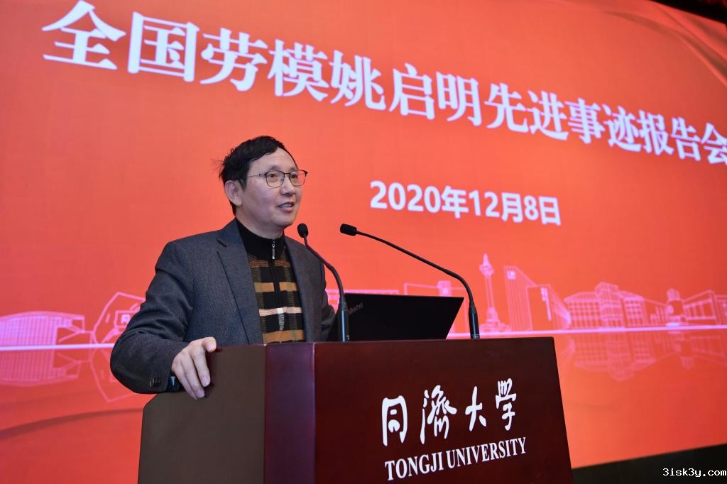 12月8日下午,我校在四平路校区举办全国劳模姚启明先进事迹报告会。上海市教育工会副主席吉启华,我校校长陈杰,全国劳动模范、建筑设计研究院(集团)有限公司汽车运动与安全研究中心主任姚启明,上海市先进工作者、校长助理、科研管理部部长童小华等出席,学校工会系统干部、机关科级干部、一线教师代表、学生代表、建筑设计研究院职工代表近200人参会。报告会由校党委副书记吴广明主持。