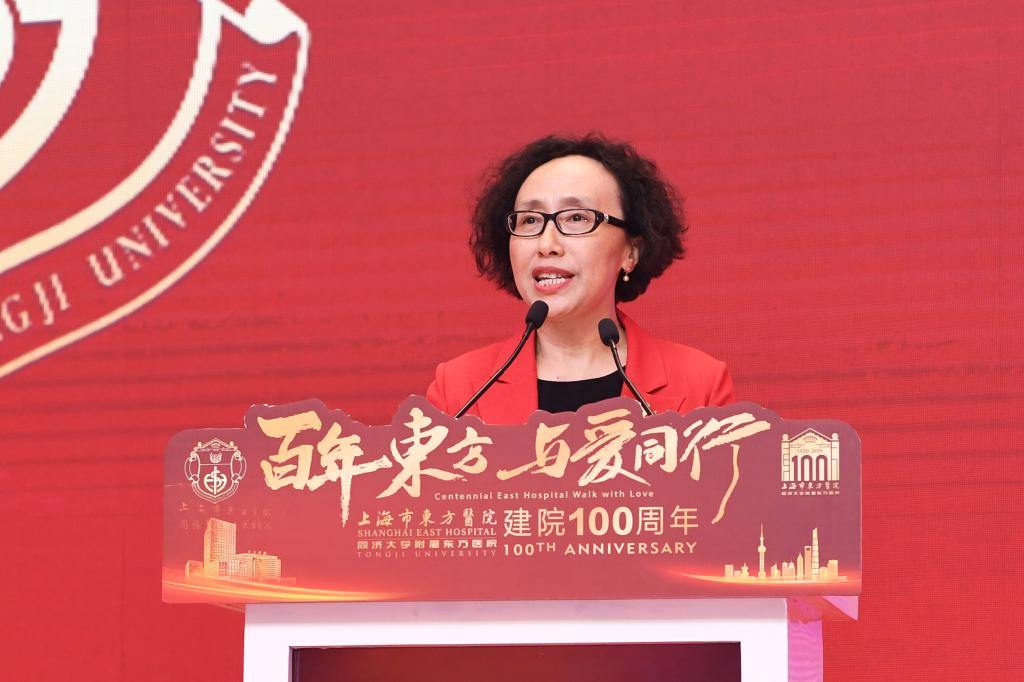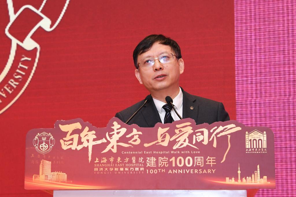 上海交通大学附属瑞金医院院长宁光院士代表兄弟医院致辞。他表示,东方医院的发展有独到之处,不少地方值得兄弟医院学习。希望东方医院在新的百年里早日建成国内一流的综合性、研究型的医院,为上海创建一流医学中心城市和有影响力的全球科创中心贡献自身力量。
