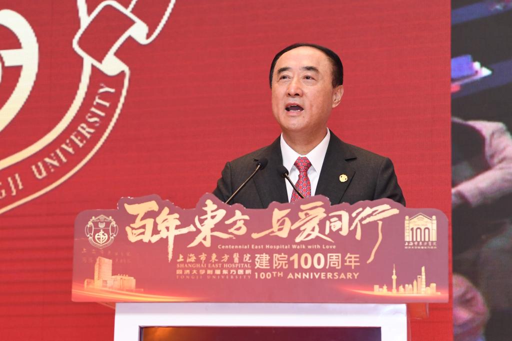 方守恩代表学校对附属东方医院百年华诞表示热烈祝贺,向长期以来关心、支持附属东方医院和同济大学医学发展的各位领导和社会各界表示衷心的感谢。他表示,东方医院传承百年的办医历史,抓住浦东开发开放的时代机遇,走出了一条蔚为壮观的中国特色、世界一流现代医院的建设之路。面向第二个百年,同济大学将一如既往加强对附属东方医院的支持,与医院携手共进,贯彻落实总书记考察上海、考察浦东的重要讲话精神,为同济医学学科发展,为浦东和上海医疗健康事业,为强化国家战略科技力量,为健康中国建设作出新的更大的贡献。