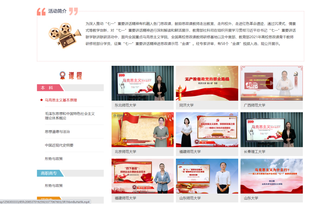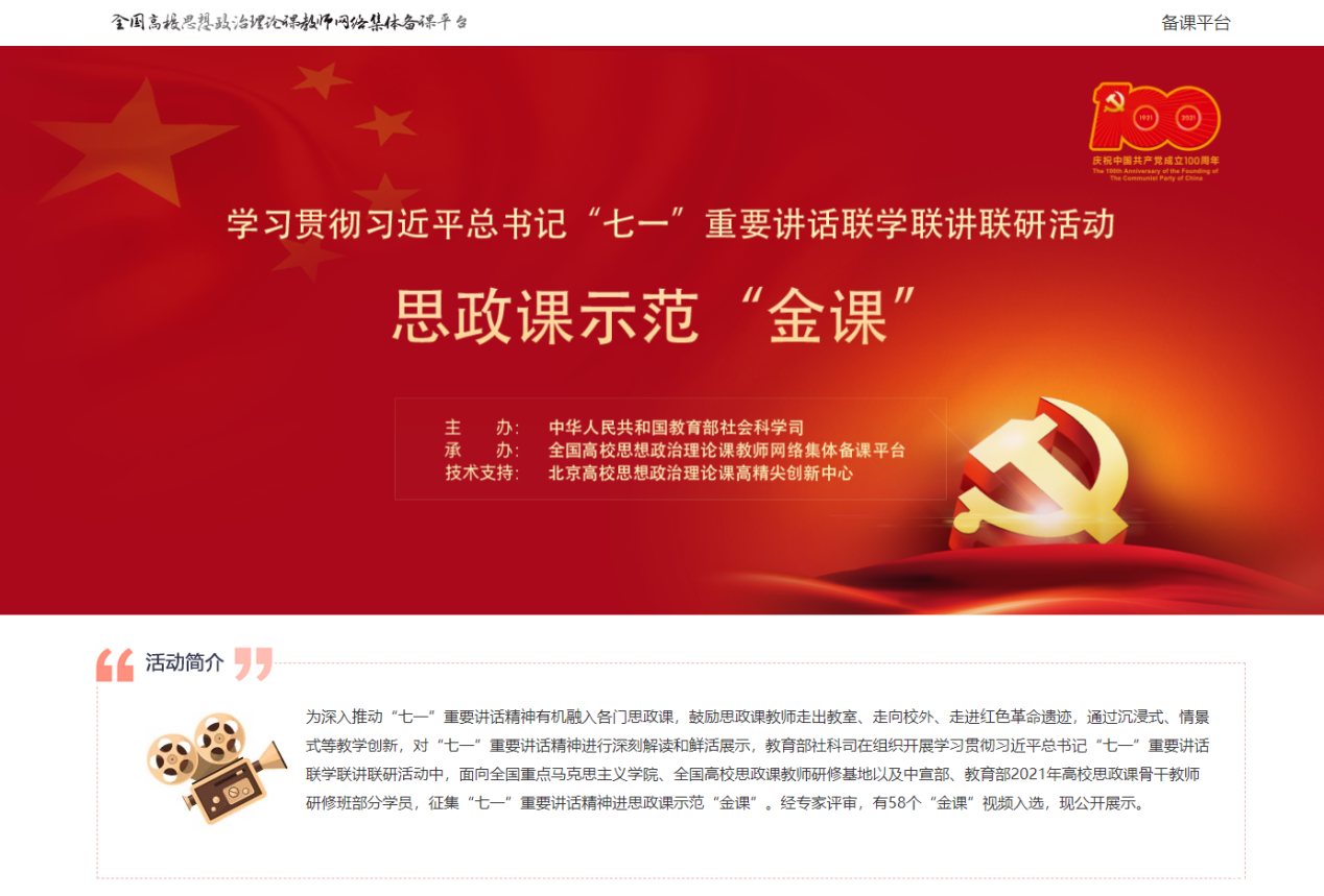“七一”重要讲话精神进思政课示范“金课”展示网站:http://zt.bjcipt.com/sfjk/index.html