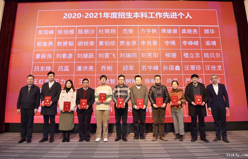 会议表彰了在2021年本科招生工作中表现突出的16个先进集体和65名先进个人。方守恩、陈杰等为获奖集体和个人颁奖。