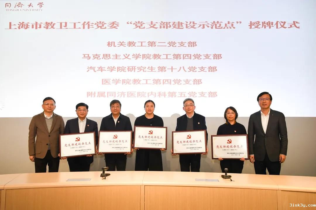 述职评议会前,学校还举行了授牌仪式,为2021年获得上海市、市教卫工作党委“党支部建设示范点”的单位授牌,并为完成校内“党员之家”建设的单位进行授牌。交通运输工程学院教工第一党支部荣获上海市“党支部建设示范点”,机关教工第二支部、马克思主义学院教工第四支部、汽车学院研究生第十八支部、医学院教工第四支部、附属同济医院内科第五支部等5个党支部荣获上海市教卫工作党委“党支部建设示范点”,环境科学与工程学院党委等27个单位建成“党员之家”。