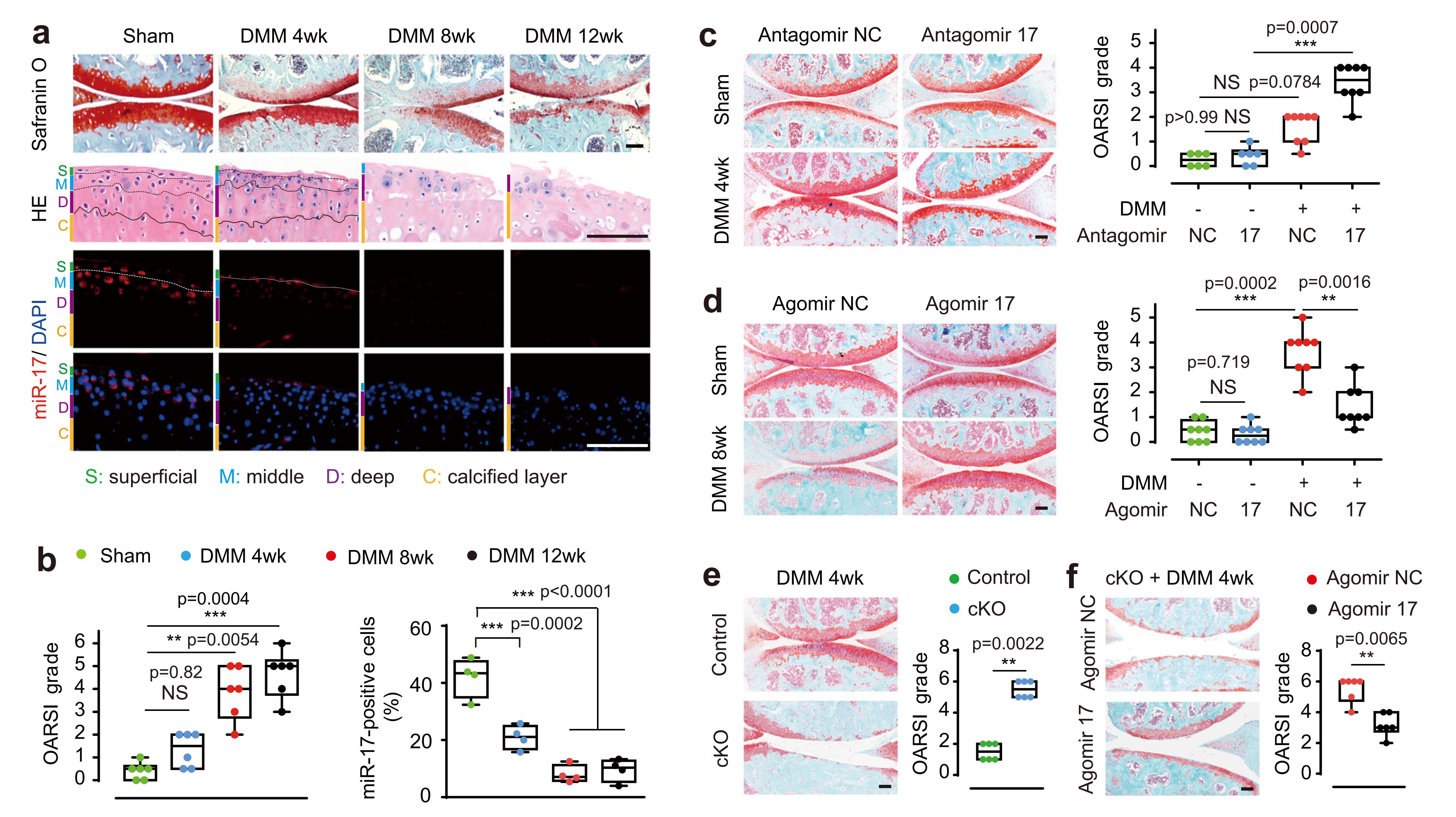 图1、miR-17缺失导致骨关节炎进展加快