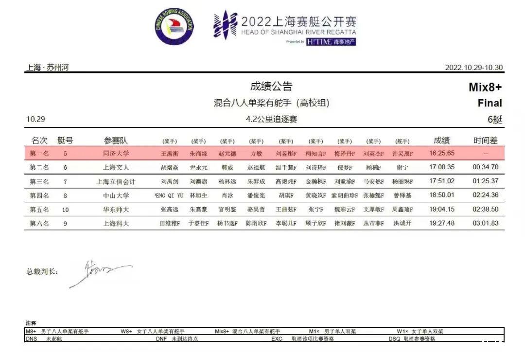 比赛设置了4.2公里追逐赛和500米城市冲刺赛,赛道蜿蜒曲折,堪称“最具挑战的赛道”。同济学子同舟共济,奋勇争先,在4.2公里追逐赛(高校组)中,分获混合八人单桨有舵手金牌、男子八人单桨有舵手银牌,在500米城市冲刺赛(高校组)中,分获混合八人单桨有舵手金牌、男子八人单桨有舵手银牌。