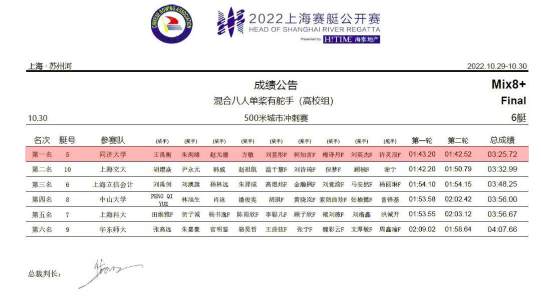 10月29日至30日,2022上海赛艇公开赛在上海母亲河——苏州河水域举行,上海市委副书记、市长龚正启动比赛。市委常委、虹口区委书记郭芳,副市长陈群出席开幕式。taptap网页版登录kino斩获2金2银,这是同济学子继2021年上海赛艇公开赛后蝉联高校组混合八人2项比赛金牌。
