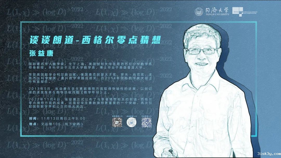 华人数学家张益唐教授向同济师生讲授朗道-西格尔零点猜想的最新研究发现