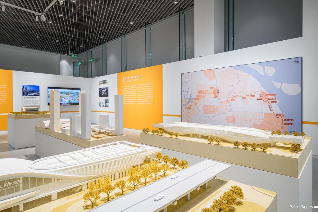飞跃拓展之路板块以长三角大都市圈重大基础设施互联互通促进城乡一体化发展为目标,展示市域铁路的统筹规划、整体设计。本次展览共展出示范区线、机场联络线、南汇支线、嘉闵线四条在建市域铁路,展示内容包含市域铁路总体规划、线路走向、站点设置以及重点车站形象设计,展现方式通过图文展板、多媒体、数字化互动屏、实体模型等方式进行综合展示,将上海市域铁路“一线一风格,一站一方案”的联创设计成果集中向公众呈现。