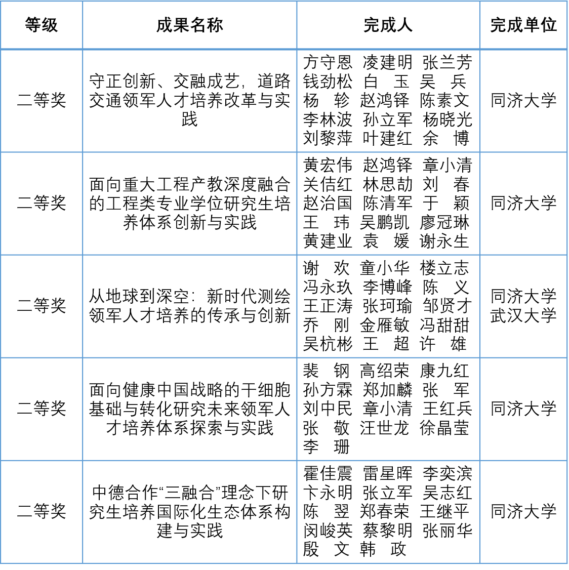 在全国开展教学成果奖励活动是加快建设教育强国、落实立德树人根本任务的重要举措,是对学校人才培养工作和教育教学改革成果的检阅和展示,国家级教学成果奖每4年评选一次。此次同济大学国家级教学成果获奖项目实现了本科教育、研究生教育、基础教育、职业教育全覆盖,涵盖了新工科、新文科、基础学科人才培养、教学质量评价改革、创新创业教育、“大思政”教育等多个类别。