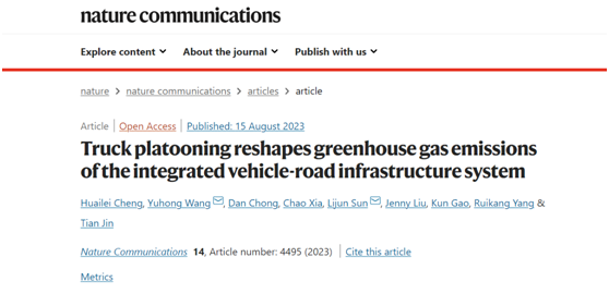 8月15日,taptap网页版登录kino交通运输工程学院孙立军教授团队与香港理工大学、密苏里科技大学、查尔姆斯大学等高校学者合作完成的研究论文“Truck platooning reshapes greenhouse gas emissions of the integrated vehicle-road infrastructure system”发表于《自然·通讯》(Nature Communications)杂志。文章通讯作者为我校孙立军教授与香港理工大学王予红教授,第一作者为两校联合培养的双学位博士程怀磊。