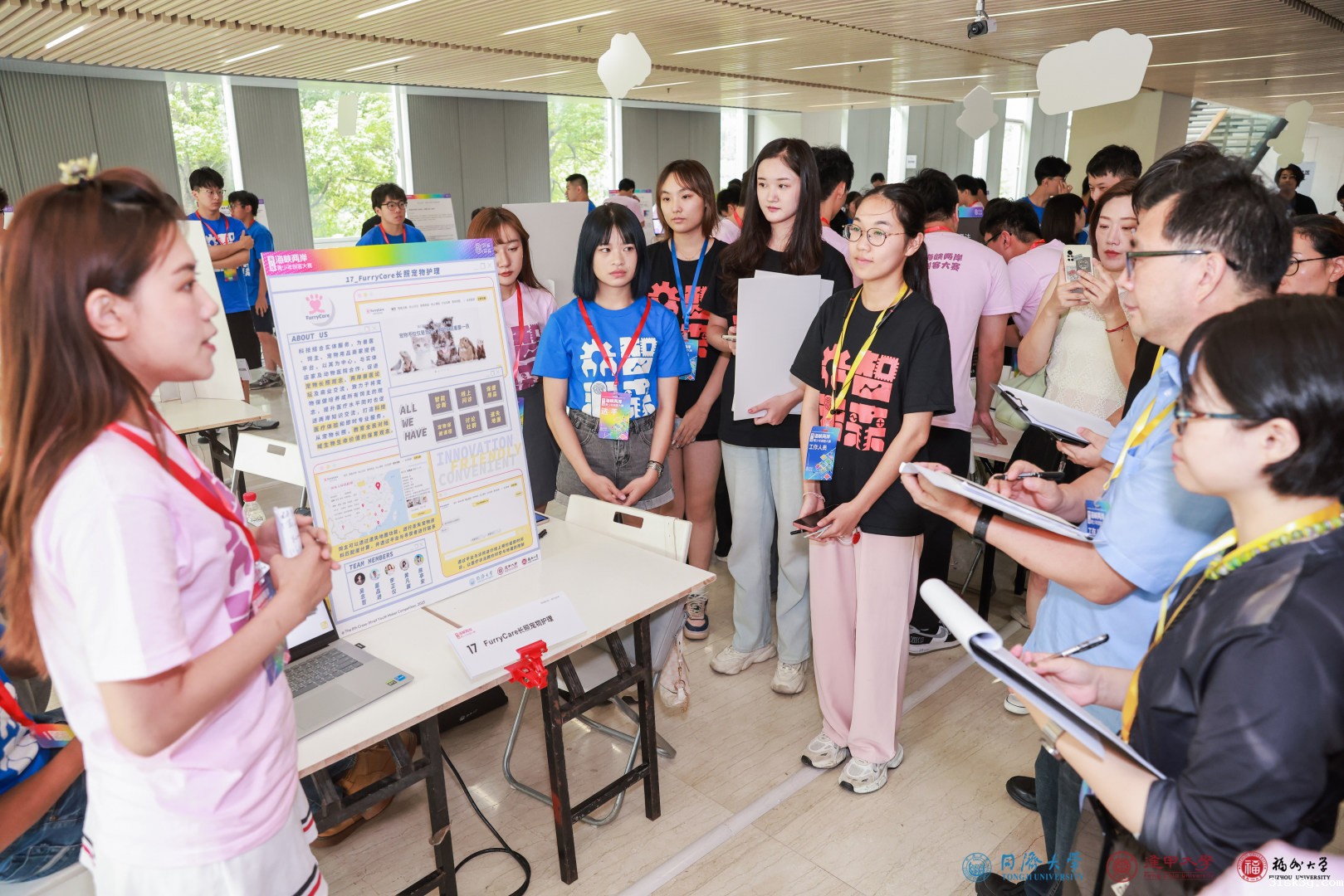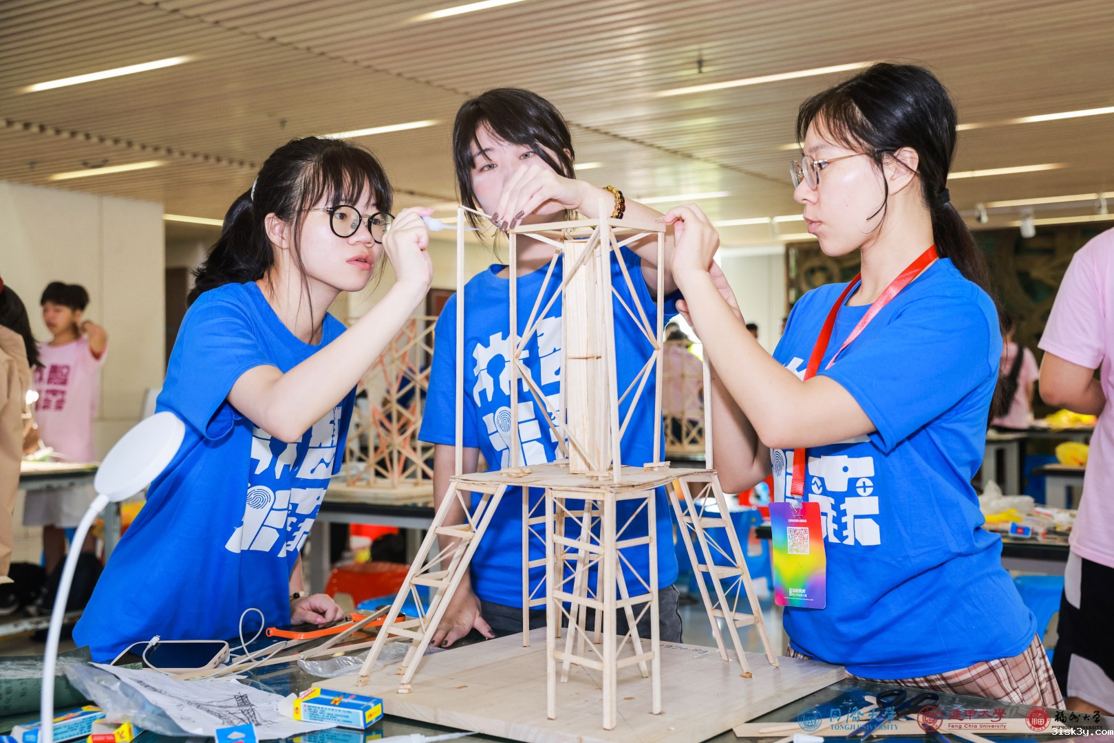 木结构的多层建筑模型、基于ChatGPT的台灯、指接榫结构设计与建造、基于塑料工业生产的二氧化碳捕集监测系统、足球赛事场上事件识别、智能道路抗滑预警与自驱动传感……无论是现场设计制作,还是赛前提交、现场展示,各赛道创新作品精彩纷呈,引来不少观者驻足。