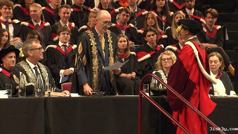 在典礼官皇家艺术学院Freddie Robins教授全面介绍了娄永琪教授在学术、教育和社会层面作出的卓越贡献以及所取得的成就之后,皇家艺术学院理事会主席(Chair of the Council)Sir Peter Bazalgette爵士正式代表皇家艺术学院参议会和理事会,授予娄永琪教授荣誉博士学位。
