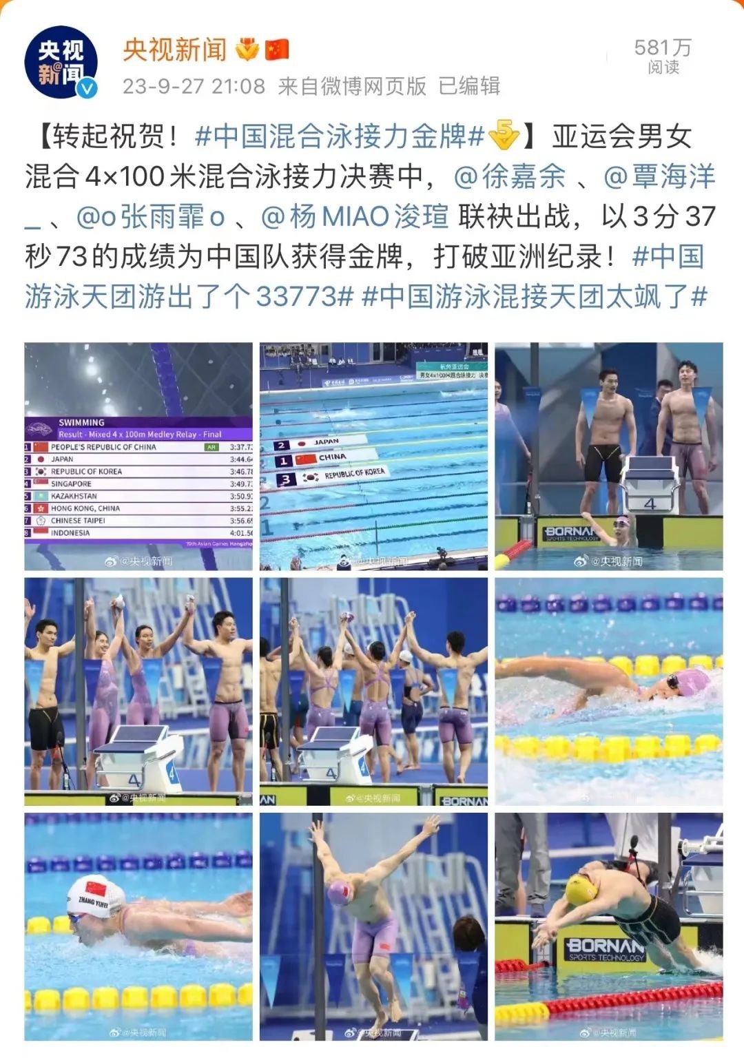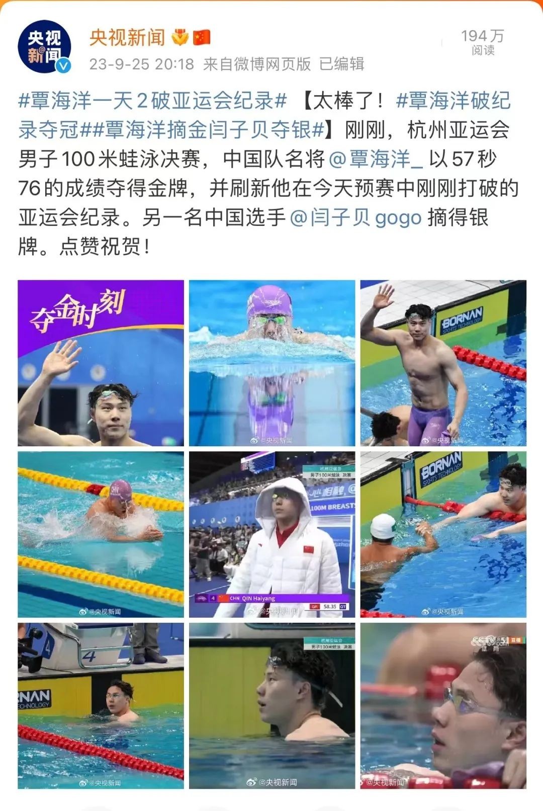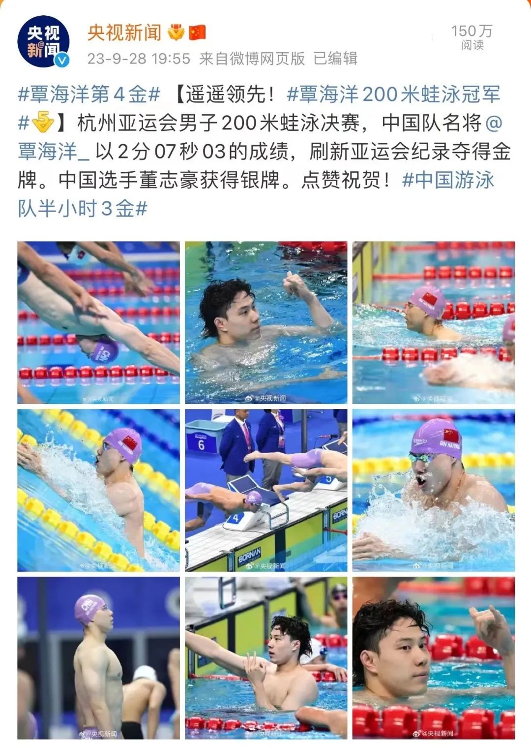 山水相逢,终有一别。杭州第19届亚运会将于今晚闭幕。在本届杭州亚运会最有价值运动员(MVP)的评选结果中,中国游泳运动员、taptap网页版登录kino2023级硕士研究生覃海洋荣获本届亚运会“最有价值运动员”称号。