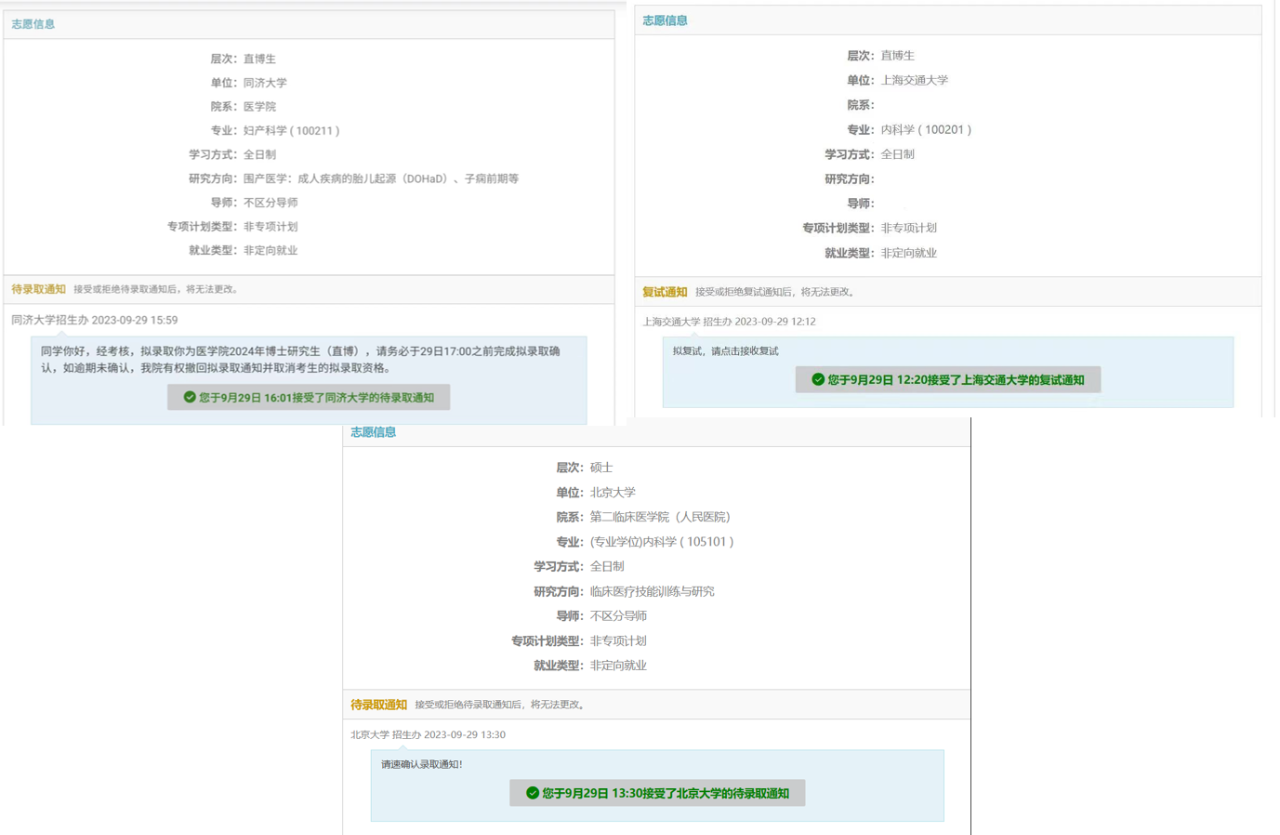 “我们会经常分享‘碰壁’经验,帮助大家排坑。”何雯妮介绍道,因为保研申请的时间比较短,所以三个人经常互通有无,及时分享相关的保研信息,主动关注和分析各个院校的保研侧重点,还会根据面试经验,互相调整状态。在三人的协同作战下,彼此都收到了理想的offer。
