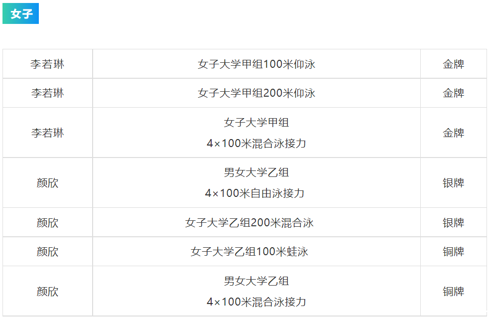 在体育教学部游泳队教练员张丰林带领下,同济学子郑英昊、缪奕凡、狄泉霖、李若琳(女)、颜欣(女)参与本次学青会游泳项目的比赛,获得7金3银3铜的优异成绩。