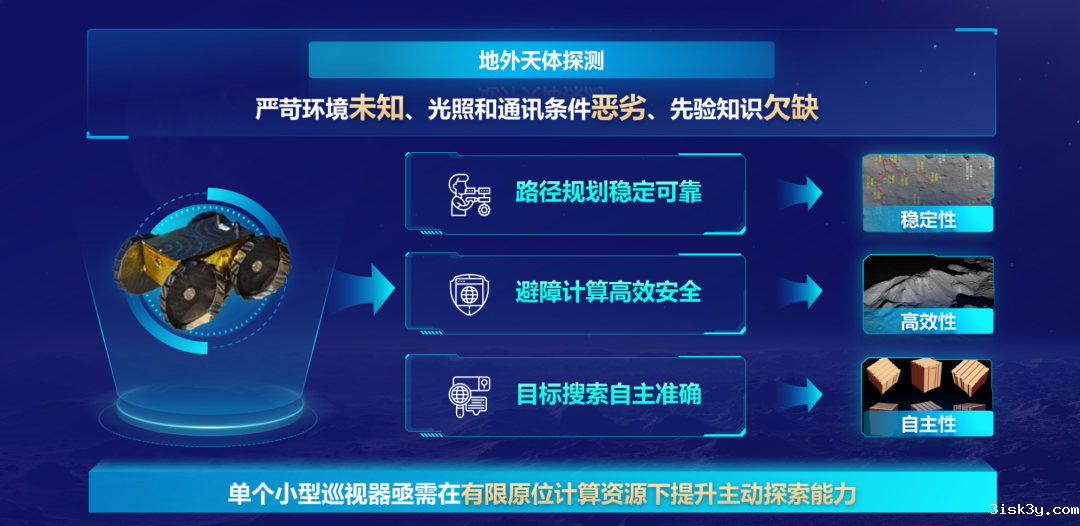 相关研究成果未来将继续服务于地外天体巡视器自主科学探测等领域,为月表水冰资源勘察与利用、月球科研站建设、火星采样返回等重要实验任务发挥关键“侦察兵”作用。