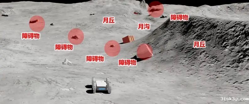 在路径规划方面,团队提出的路径规划算法能够高效、稳定计算出初始点到目标区域中心的最优路线,并可以完全躲避月山、月沟等危险区域。