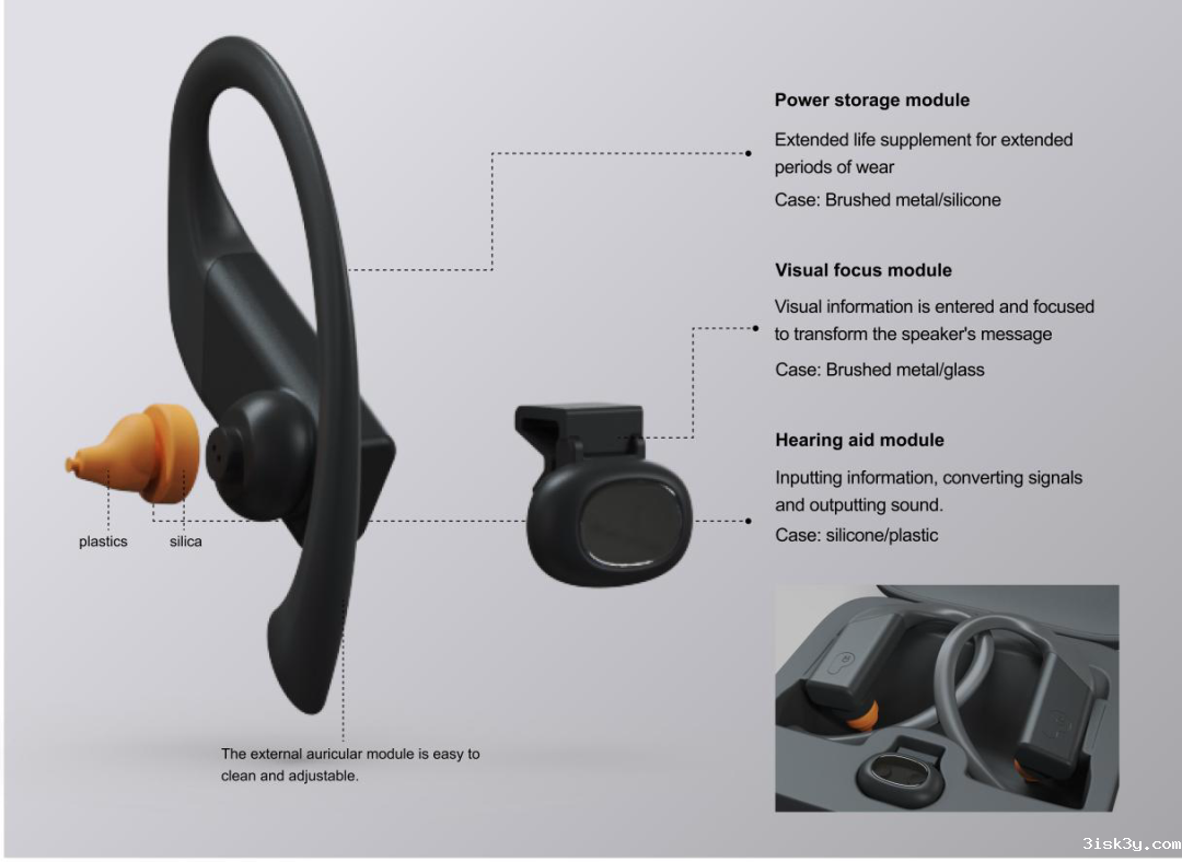 人耳可以屏蔽百分之八十的噪音,去聚焦与放大自我意识所关注的声音。而在多人环境下,现有助听器存在无法聚焦单一声音、自动调节等明显功能性缺陷。“FOCUS”助听器产品端基于视觉捕捉技术,通过深感摄像结合视觉感知,旨在模拟并恢复正常听力者所具有的空间声音聚焦能力和声响自动调节机制。同时,交互端兼顾语言恢复训练与社群性情感与信息交流。整套设备通过低成本、小影响的优势,高维度提升用户体验感,注重佩戴舒适度和康复疗效。