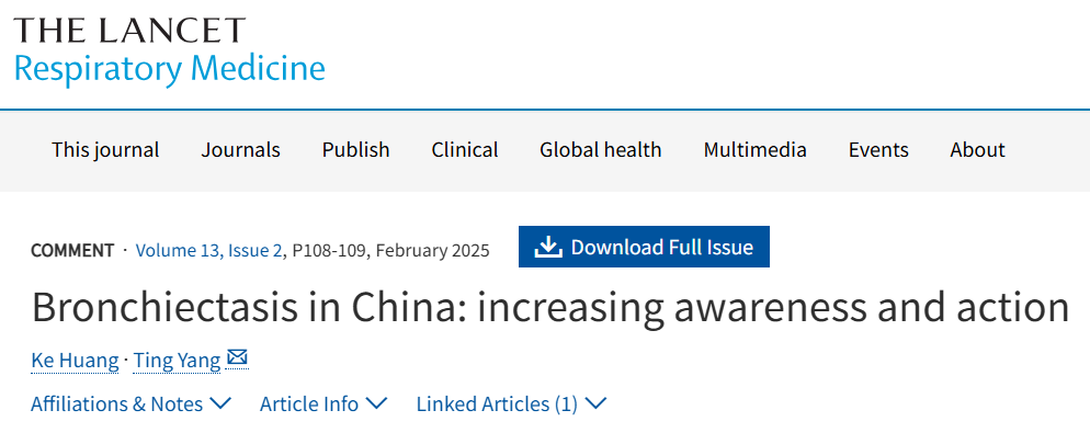同济教授领衔的中国支气管扩张症临床诊治与研究联盟队列的研究成果以封面文章形式发表于《柳叶刀·呼吸医学》