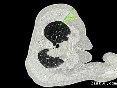随着机器人扫描的同时,影像即刻传输至穿刺手术导航定位系统,系统对其肺部进行二维图像与三维模型的重建。同轴针准确到达规划位置,医生对其肺部病变组织进行了活检取样操作,没有给患者造成任何相关并发症。