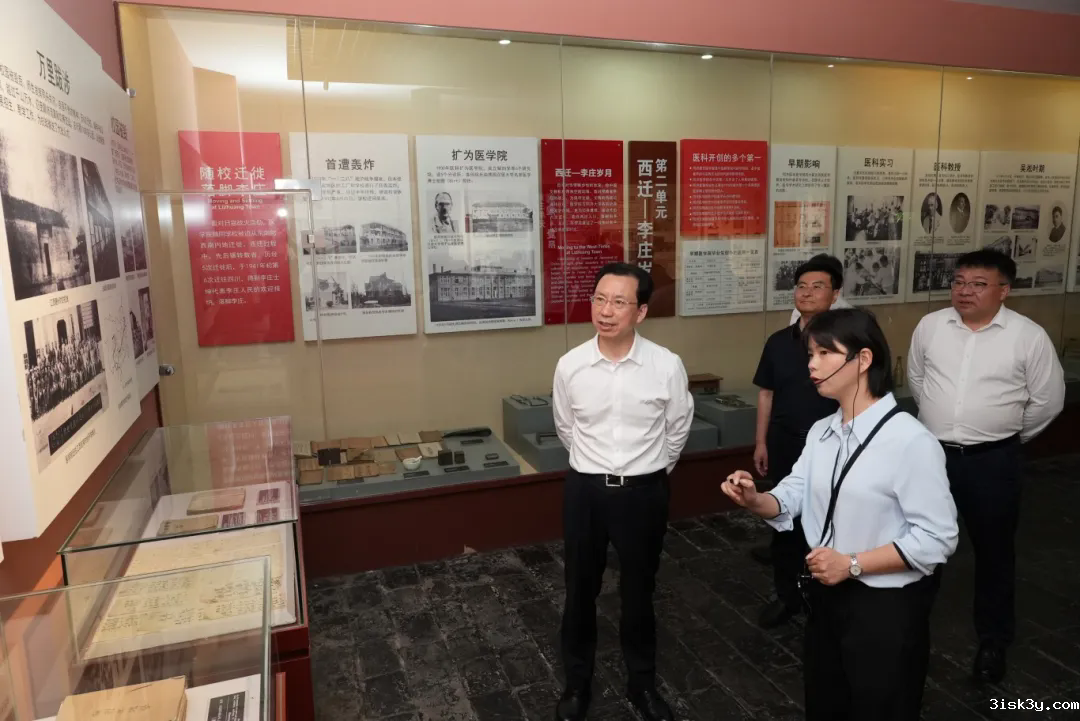 在taptap网页版登录kino医学院旧址——祖师殿,郑庆华参观了“国立taptap网页版登录kino医学院在李庄办学专题展”和“吴孟超院士回忆李庄岁月专题展”。展览重点回顾了国立taptap网页版登录kino医学院在李庄办学、开展科普、根治川南流行病“痹病”、救治百姓、服务地方的光荣历史,以及吴孟超院士等同济学子在李庄的求学生涯和学成报国、服务地方所作出的杰出贡献。