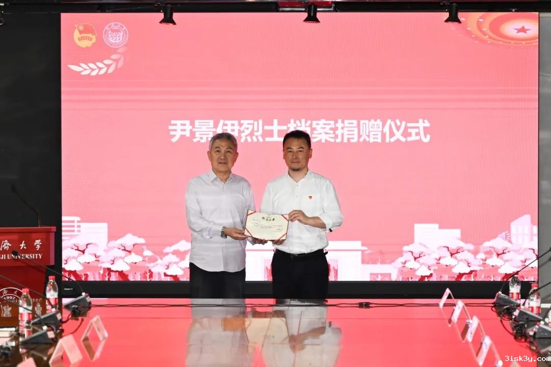 “这张100年前尹景伊烈士唯一一张原版照片,是我此次捐赠最珍贵的档案资料,当它和我搜集到的1984年同济师生为烈士塑像的捐款凭证摆在一起,百年的历史与现实紧紧地连接在一起!”尹夙先生深情讲述了尹景伊烈士的革命事迹。作为同济反帝反封建历史上的首位烈士,尹景伊在五卅运动中挺身而出、英勇牺牲,其“少年意气、家国担当”的精神跨越百年,尹夙先生深切寄望英烈精神深深植入同济人的血脉并在新时代焕发出新的光芒。