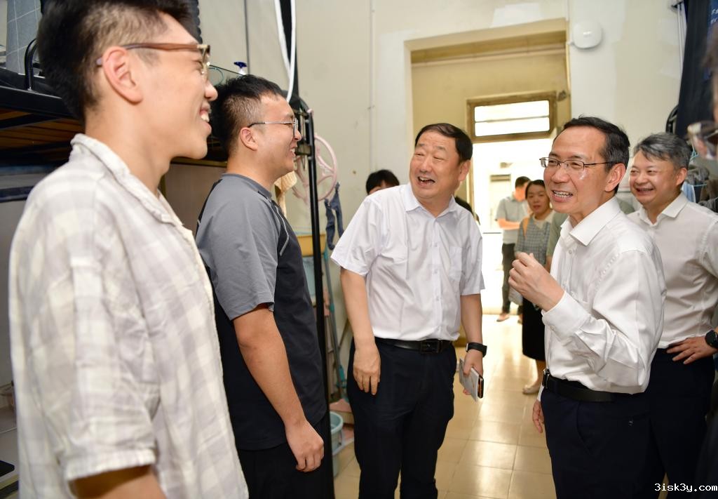 杨金龙还先后在德楼、致臻楼调研实验平台建设情况;在艺嘉楼调研校园公共文化空间;在修缮及新建学生宿舍楼现场察看施工进度。