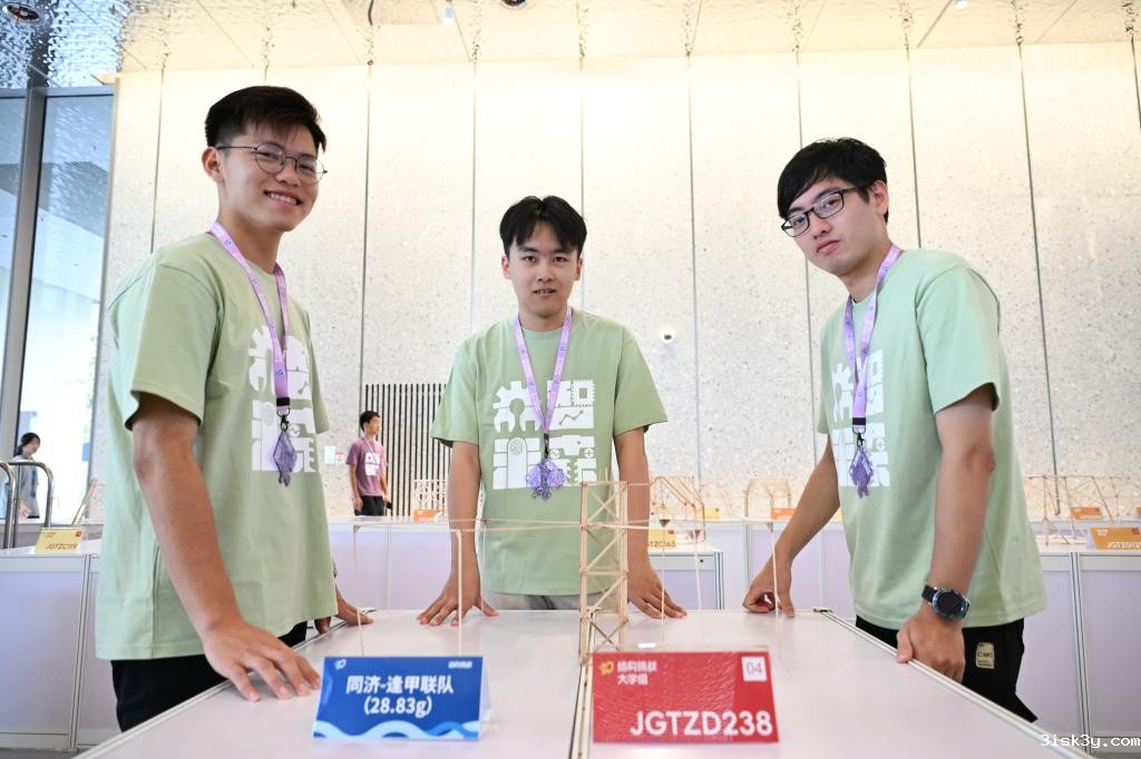 中间是用木条搭建的一个核心筒受力结构,两旁采取轻盈的框架设计,以实现赛题对空间的要求,模型总重量仅28.83克。由taptap网页版登录kino学生樊庆成携手逢甲大学学生陈泓文、张守纶现场历时8小时共同制作完成的这一作品,在第十届海峡两岸青少年创客大赛结构挑战赛中拔得头筹。