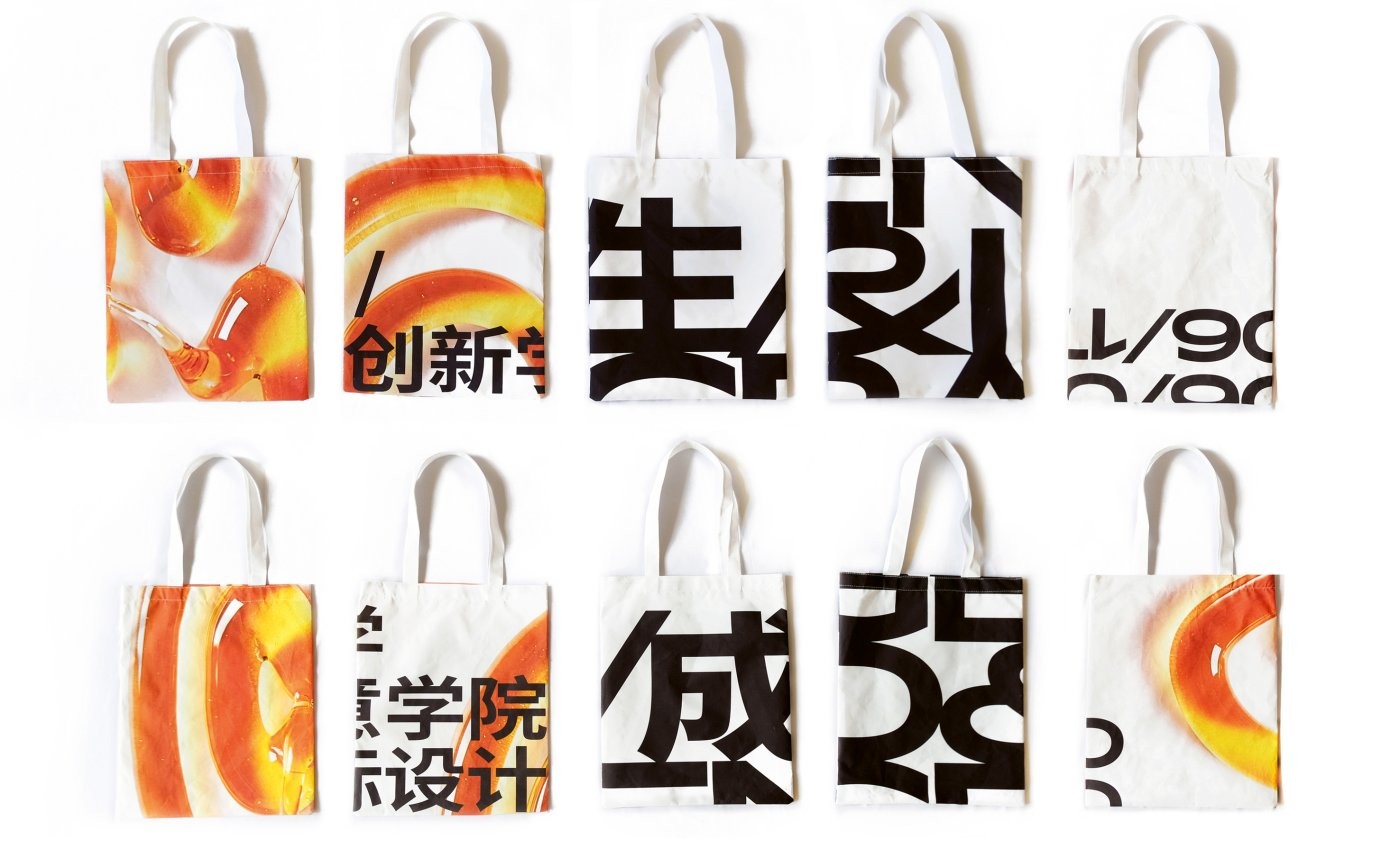 海报最终以双层形式呈现,在透明薄膜的上层印制糖画图案,以呈现糖画的通透质感,下层仅包含黑白色的展览文字信息,这种分层设计既突显了糖画的艺术特性,又实现了信息传递的功能。展览期间,创作团队进一步将这一瞬态的糖画转化为4米×10米的巨幅环保布料海报,覆盖于展馆外立面,展览结束后更回收制作成手提袋,使设计生命得以延续。配合可发芽的种子纸名牌,整套作品在“科技—传统”“瞬间—永恒”“摧毁—重生”的多重对话中,传递出学院对年轻一代的深切寄语:以坚韧与开放之心,拥抱生命中的每一次塑造。