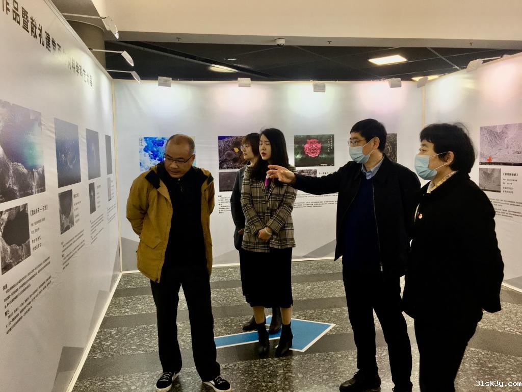 材料科学与工程学院负责人介绍了微结构摄影作品展背景。2021年将迎来中国共产党百年华诞,材料科学与工程学院恰逢65周年院庆,举办材料学科文化展旨在传承红色基因,推进校园文明建设,促进文理学科交叉,助力大学文化建设,展现文化育人品牌,为党的百年华诞献礼。此次展出的100幅微结构摄影作品,是2020年全国微结构摄影大赛的获奖作品,是我校和兄弟高校师生创作的优秀作品代表,作品实现了材料学科文化与艺术的融合,讴歌了伟大的中国共产党和奋勇当先的英雄人民。材料科学与工程学院还将一幅优秀学生作品赠予图书馆,以示感谢。