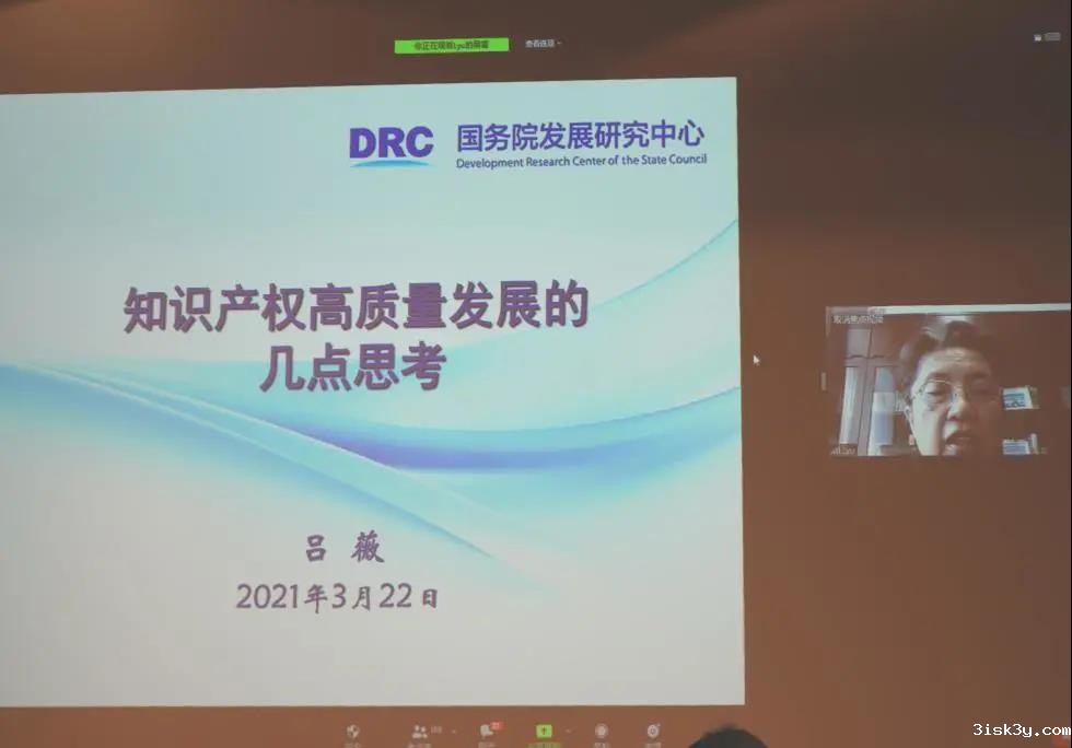 在主旨演讲环节,全国人大代表、全国人大常委会委员、国务院发展研究中心研究员吕薇在线分享了有关知识产权高质量发展的几点思考。她表示,在企业内部原始创新能力需求、知识产权成果注册数量与质量不协调、全球知识产权竞争和规则新趋势、数字技术出现导致网络盗版和侵权等知识产权发展现状下,知识产权保护上升到国家整体战略高度,实则是国家竞争力与治理现代化的重要议题。对于如何促进知识产权高质量发展问题,她认为应加强基础研究,提高原始创新能力,突破涉及国家安全的核心关键技术,保障产业链和供应链安全稳定,聚焦实体经济,促进产业技术转型升级,从而实现自主创新与开放创新相结合,构建国际国内双循环发展新格局。