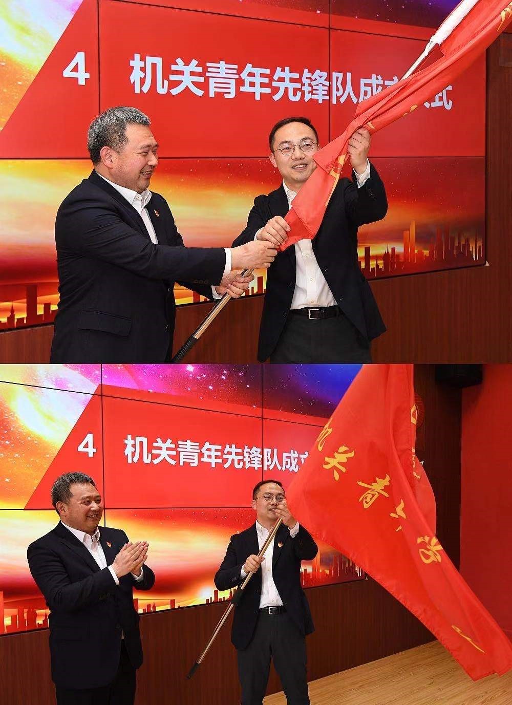 会议还举行了“同济大学机关青年先锋队”授旗仪式。今年是中国共产党成立100周年,先锋队将结合“学党史”“强作风”“办实事”开展系列活动,凝心聚力,于党史学习中汲取力量,积极履行“十要、十更要”作风公约,努力学习新理论、新知识,以饱满的工作热情和昂扬的工作状态投入到各项工作中,为建设中国特色世界一流大学贡献来自机关青年的智慧和力量。