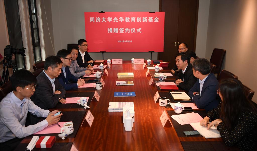 5月20日,在同济大学迎来建校114周年之际,光华教育集团董事局主席、同济大学1987级校友鲁育宗博士捐赠人民币壹千万元设立“同济大学光华教育创新基金”,同济大学光华教育创新基金捐赠仪式在四平路校区举行。鲁育宗博士,光华教育集团副总裁李正林,光华教育集团法律顾问、炜衡上海律师事务所合伙人律师王暾,副校长童小华,以及光华教育集团、我校相关职能部门负责人等出席仪式。