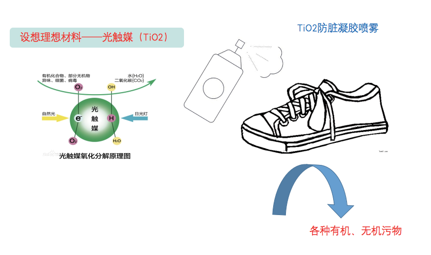 日常生活中新买的白鞋很容易脏,而且不易清洁。受餐桌上经常放置一层保护垫来防止餐桌磨损,以及夏天人们通过涂抹防晒霜和喷防晒喷雾来隔绝紫外线对皮肤的伤害的启发,我想到可不可以找到一种隔脏材料,给鞋子做一个保护膜?通过查询资料,我找到了理想材料——光触媒,也就是TiO2。作为一种自清洁镀膜,被阳光照射后的TiO2薄膜表面具有良好的光诱导超亲水性,TiO2的这种亲水性与光催化性使有机污物和无机污物均不容易附着在镀膜表面,并可在自然雨水的冲刷下清洗表面。我们设计的白鞋防脏凝胶喷雾就是将TiO2喷在鞋子上形成隐形镀膜后,可以有效隔绝各种有机、无机污物对鞋面的污染,同时自清洁功能可以保证鞋面一直光亮如新。——口腔医学院程令媛