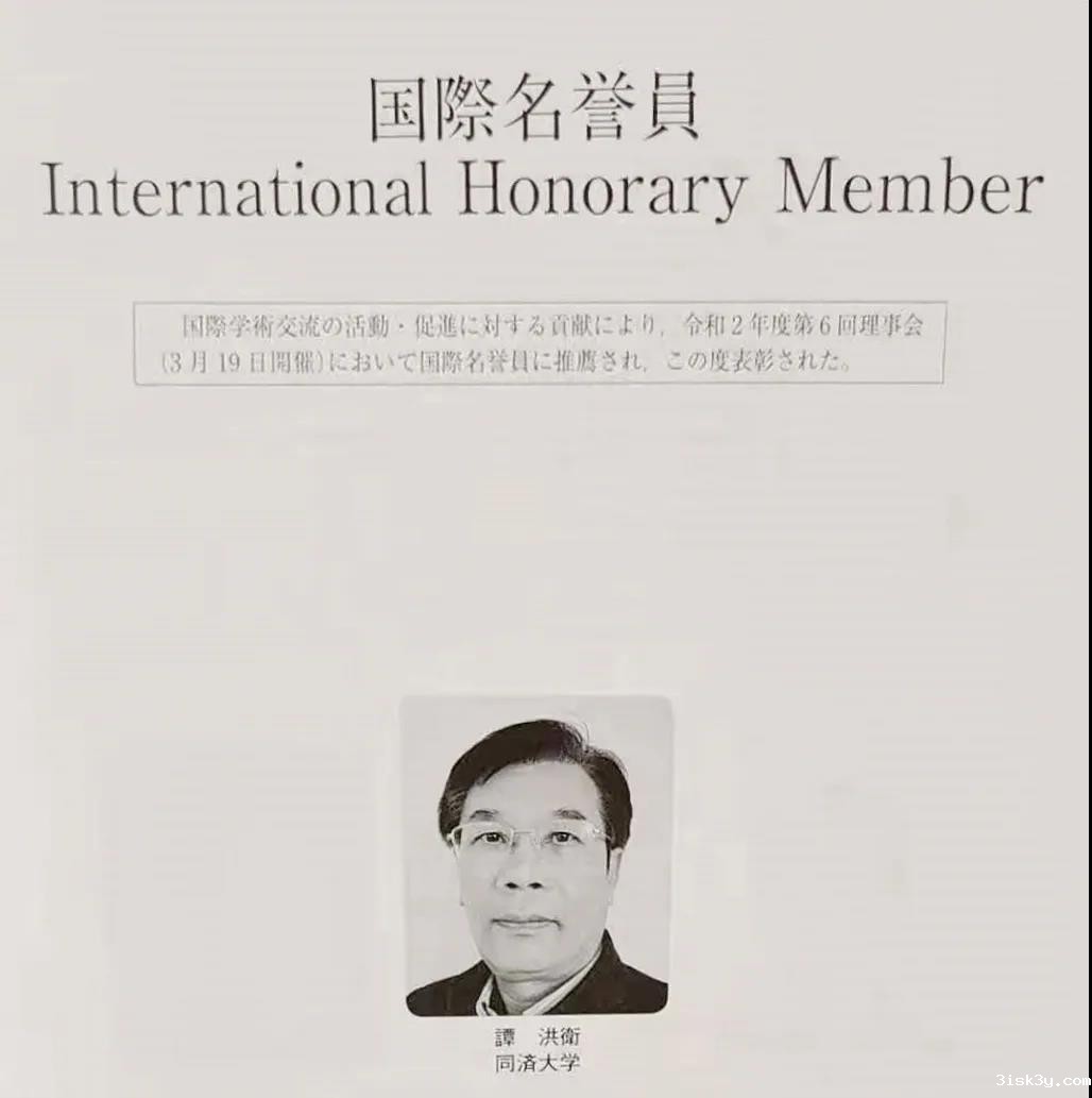谭洪卫教授荣获“日本空气调和卫生工学会国际荣誉会士”称号