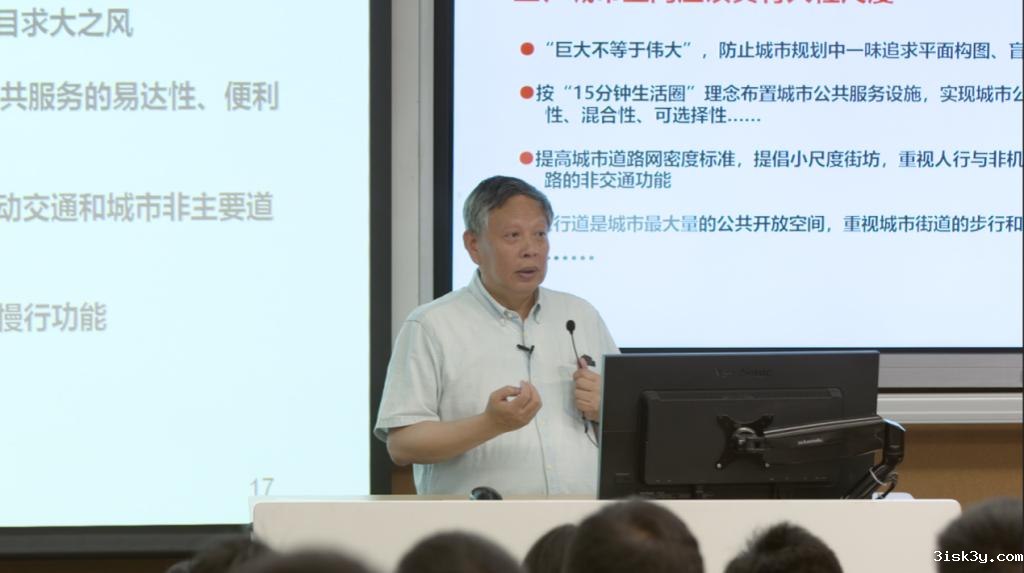 在课程展开过程中,伍江基于“城市物理空间”的意义,围绕关于城市的根本价值、城市是人类文明最重要的物质空间载体、城市空间应该具有人性尺度、城市空间应该体现公平正义、城市空间的安全韧性、城市空间的“烟火气”、城市的公共空间、人民城市人民建(管)8个方面,阐述了他对人民城市建设的理解与思考。他表示,因为建筑是可以阅读的,街区是适合漫步的,公园是最宜休憩的,市民是尊重诚信文明的,所以,城市始终是有温度的。这个温度不是“热”,而是“我们热爱自己的家乡、热爱自己的城市、热爱自己的国家”。只有这座城市为人民,人民才会热爱这座城市。