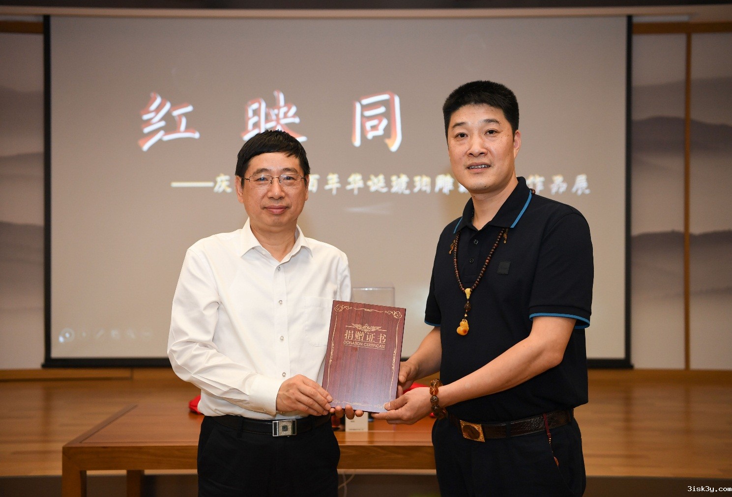 “红映同济——庆祝中国共产党百年华诞琥珀雕刻艺术作品展”在嘉定校区文榷堂揭幕