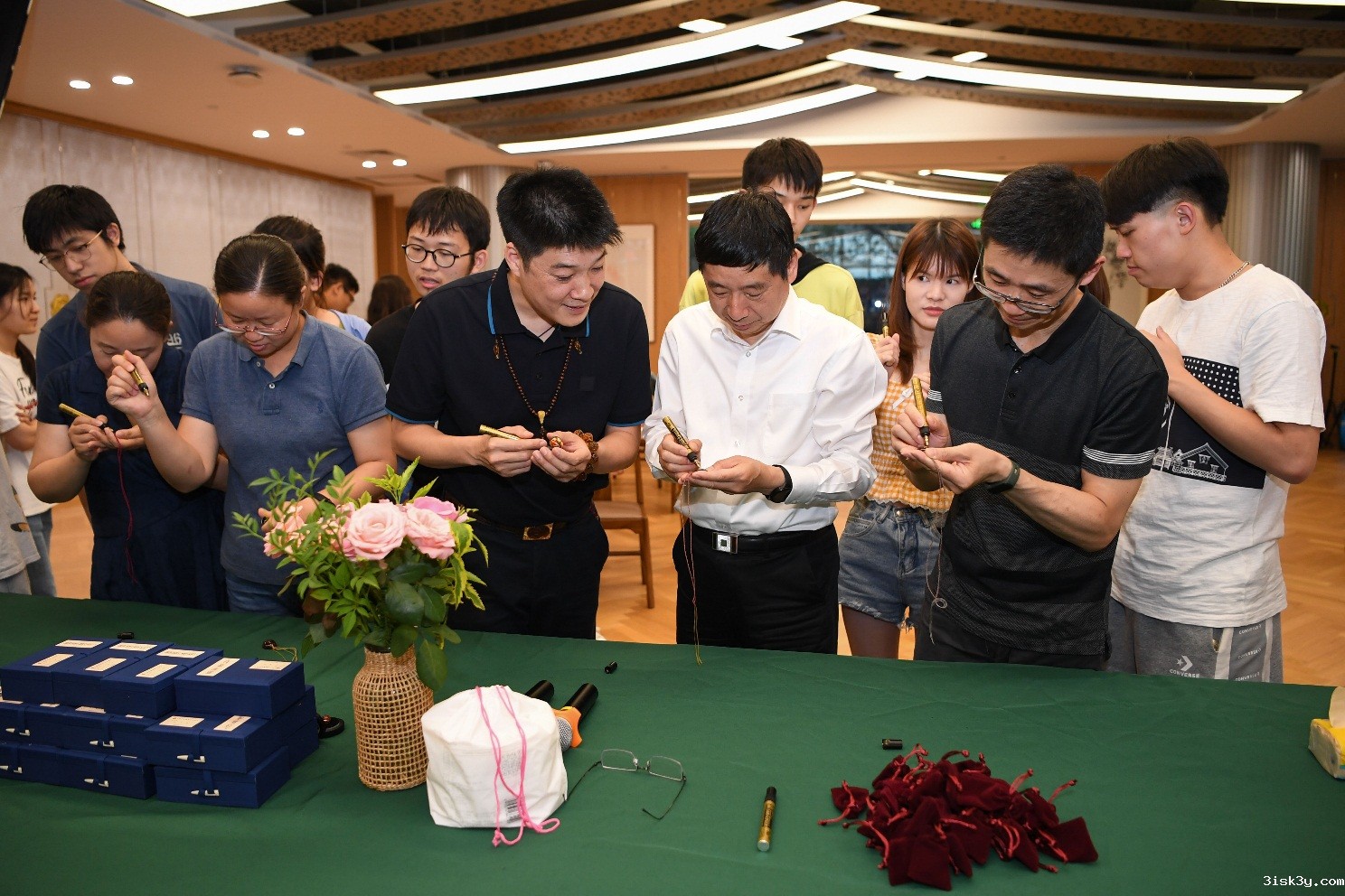 活动最后,吴广明和郑升帅共同为琥珀雕刻《唱支山歌给党听》揭幕。郑升帅介绍了《唱支山歌给党听》的创作背景、作品的琥珀原石和雕刻技法,并带领师生参观了展览。郑升帅将琥珀雕刻与古典诗词、自然环境、飞禽走兽、人物刻画等结合,为师生展现了一件件精美绝妙的琥珀作品。该展览将持续到8月底。