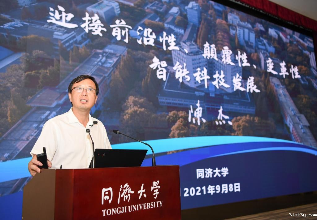 陈杰阐述了当前人工智能的前沿基础理论研究、前沿技术动态和未来技术趋势。他指出,人工智能包含单体智能、集群智能和智能群系统三大类,每个类别都有一些基础性、本源性、关键的科学问题尚不清楚,还未得到根本性突破,同学们在这些领域大有可为。他介绍了国务院发布的《新一代人工智能发展规划》,指出当前我国在人工智能人才、理论研究、研究设施、产业布局、原创性成果等方面还存在相当差距,急需追赶和超越。他鼓励同济青年学子走自主创新的中国道路,瞄准人工智能前沿尚未很好解决的关键科学问题,刻苦钻研,为提升我国人工智能科技创新能力作出应有的贡献。