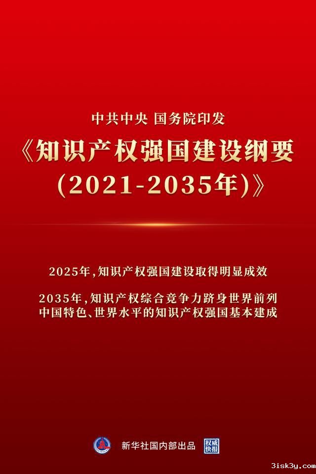 近日,中共中央、国务院印发《知识产权强国建设纲要(2021-2035年)》。纲要部署了“建设面向社会主义现代化的知识产权制度”“建设支撑国际一流营商环境的知识产权保护体系”“建设激励创新发展的知识产权市场运行机制”“建设便民利民的知识产权公共服务体系”“建设促进知识产权高质量发展的人文社会环境”“深度参与全球知识产权治理”六个方面重点任务,为加快建设中国特色、世界水平的知识产权强国擘画了宏伟蓝图。