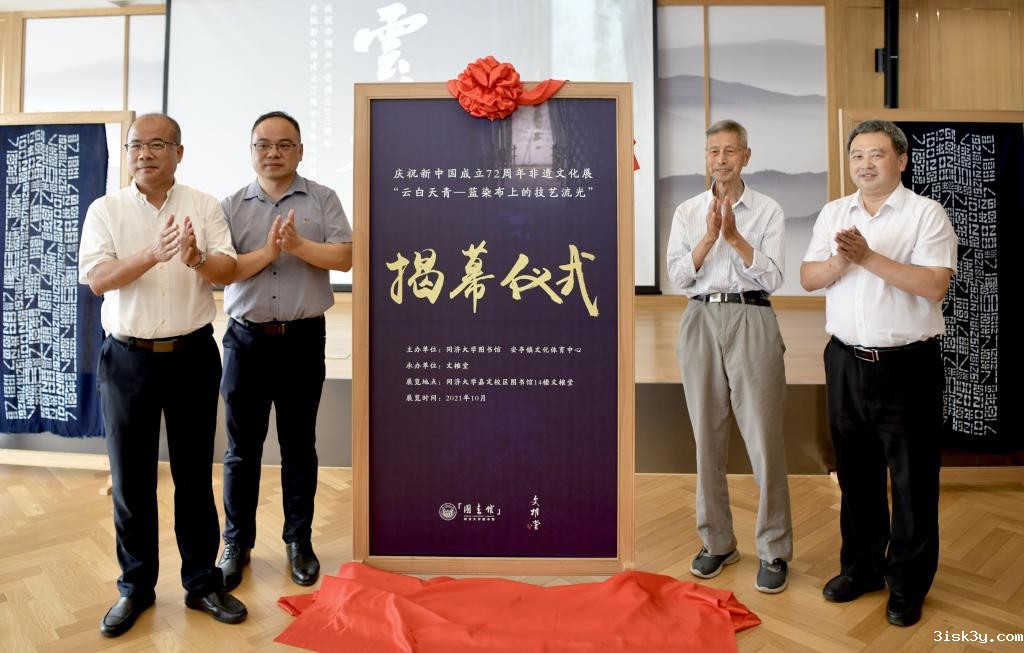 9月28日,庆祝中国共产党成立100周年、新中国成立72周年非遗文化展“云白天青——蓝染布上的技艺流光”在嘉定校区文榷堂揭幕。非物质文化遗产“安亭药斑布”传承人、“震川书画院”名誉院长王元昌及弟子柳玉成,蓝印花布包袱收藏专家陈益锋,安亭镇党委宣传部、文化体育服务中心,我校党委宣传部、嘉定校区党工委、图书馆、taptap网页版登录kino教师书画协会相关负责人及学院师生代表参加了揭幕仪式。