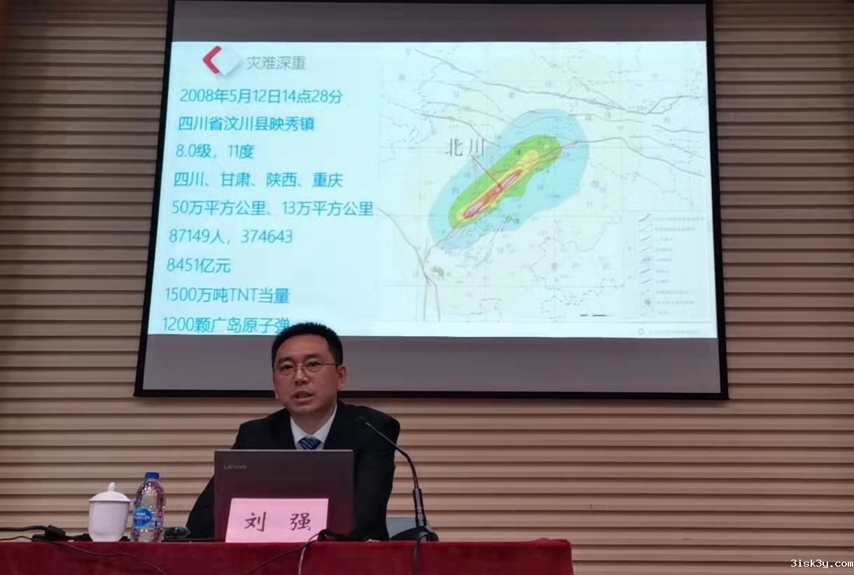 刘强通过详实的数据、现场与灾后的救援视频,讲述了抗震救灾中的感人故事,带领大家回顾了中国共产党带领全党全军全国人民取得抗震救灾胜利的艰辛历程,深刻剖析了在这一过程中形成的八级强震震不垮、地动山摇摇不散的“万众一心、众志成城,不畏艰险、百折不挠,以人为本、尊重科学”的伟大抗震救灾精神。他表示,抗震救灾精神是爱国主义、集体主义、社会主义精神的集中体现和新的发展,是中国精神的集中体现和新的发展,是中国共产党人精神谱系的重要组成部分。他从抗震救灾精神引申到中国精神和文化自信,鼓励师生们坚定文化自信,弘扬中国精神,坚定马克思主义的指导地位,助力实现中华民族伟大复兴。