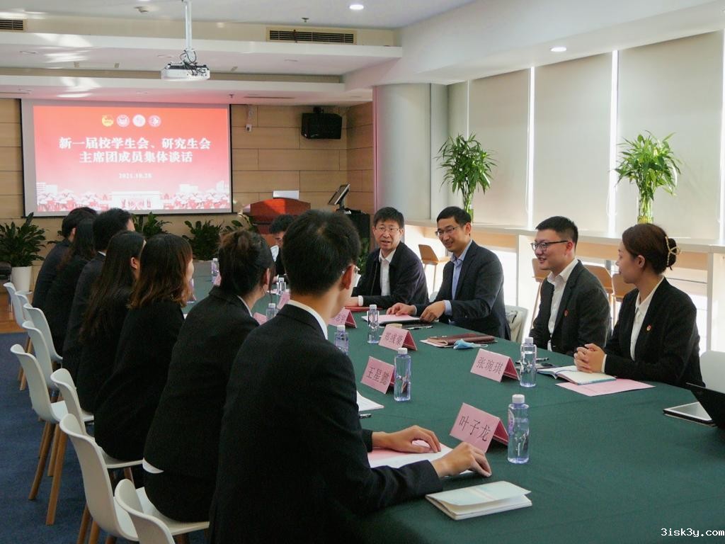 10月28日,校党委副书记彭震伟与校学生会、研究生会新一届主席团成员集体谈话。校团委相关负责人参加会议。