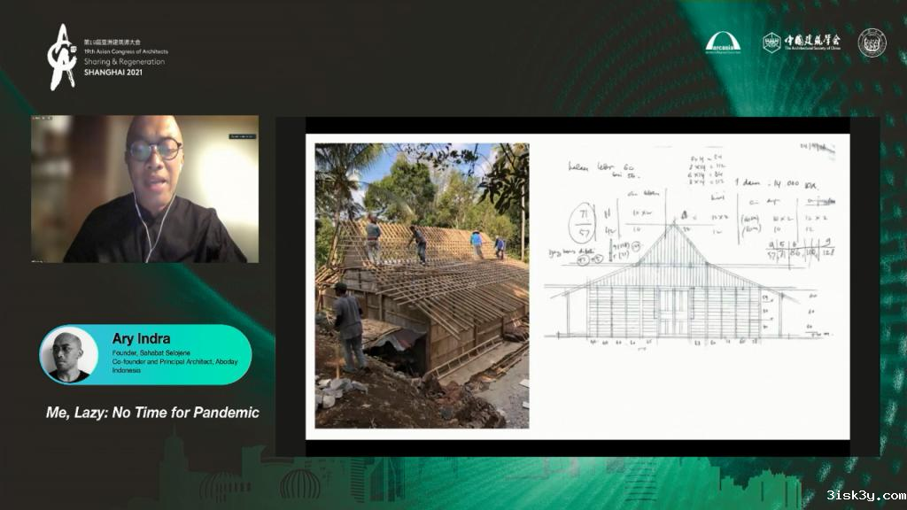 Ary Indra的演讲强调了地域性工艺传统对于新时代亚洲建筑的重要性。他以自己的经历为例,描述了不用精细的绘图方法,而是用草图,与当地工匠合作,采用手工艺的方式进行营建的过程。他认为这样的建造方式可以提高居民的参与度。不是靠建筑师来决定他们的生活方式,而是居民自己提出想法,建筑师帮助他们实现,最终的方案是适应地方条件和居民需求的,也是可持续的。