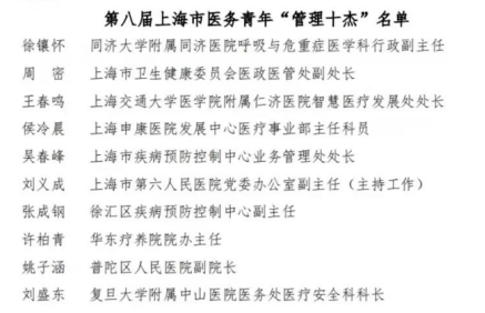 附属同济医院徐镶怀获评第八届上海市医务青年“管理十杰”