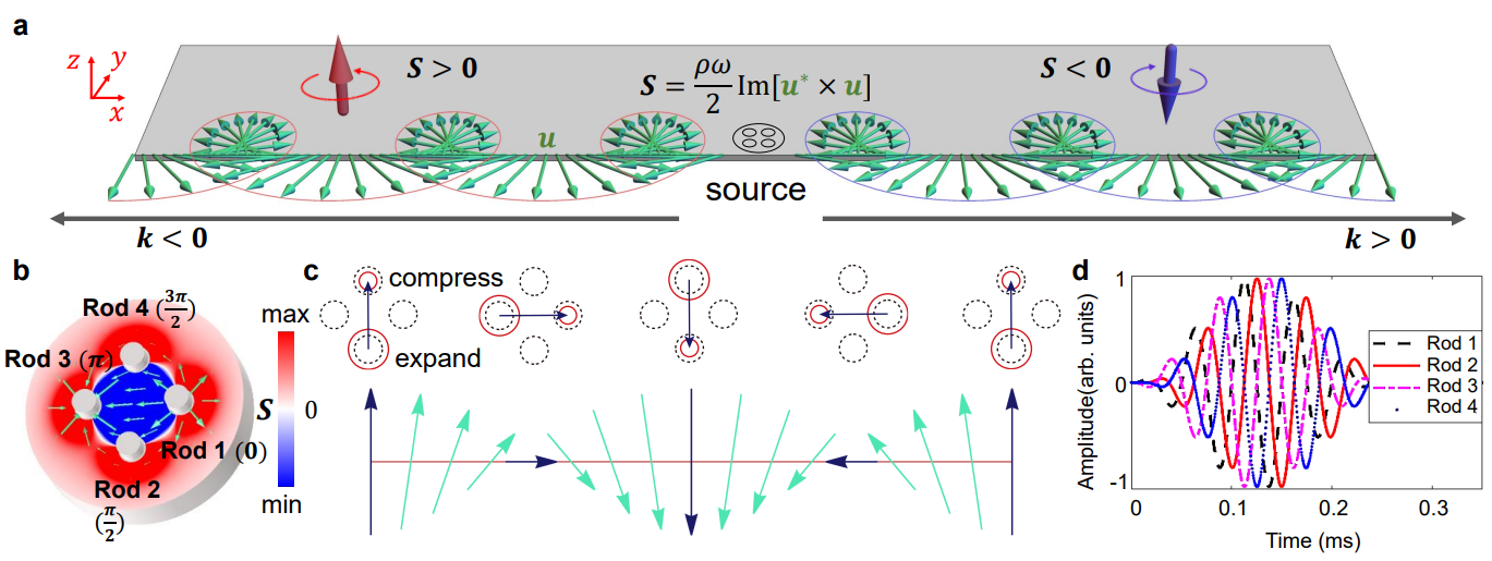 该研究在金属板中构造并成功实现了可以选择性激励弹性波自旋角动量的波源,并且在瑞利波和兰姆波中观测到了与理论相符的自旋-动量锁定现象,有望为新型弹性波器件和自旋调控器件提供新思路。