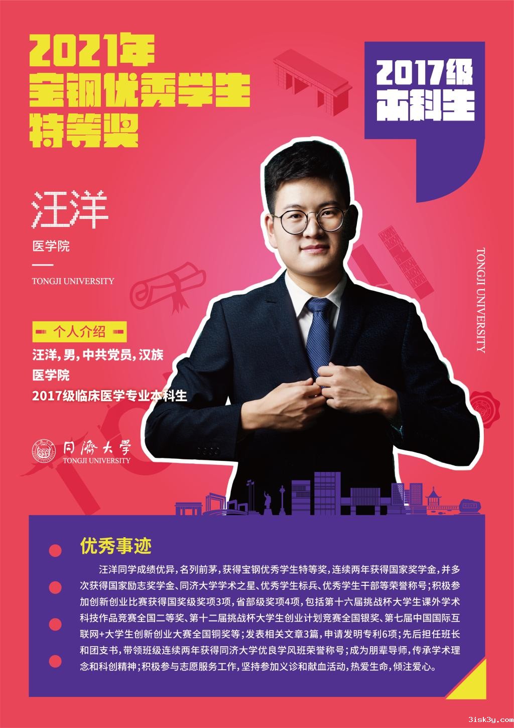 近日,2021年度宝钢教育奖揭晓,taptap网页版登录kino医学院临床医学专业2017级本科生汪洋荣获“宝钢优秀学生特等奖”。