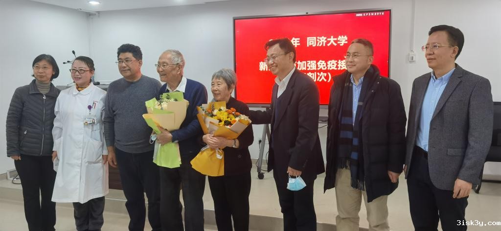 12月19日中午,汪品先院士和夫人孙湘君教授一同走进附属同济医院分院四楼新冠疫苗接种室,成为学校首位80岁以上的加强新冠疫苗接种者。常务副校长吕培明等来到接种现场,向汪品先院士夫妇表示慰问,向坚守在新冠疫苗接种一线的医务人员表示慰问。四平路街道以及医学院、海洋与地球科学学院、附属同济医院分院负责人和附属同济医院专家等参加慰问。