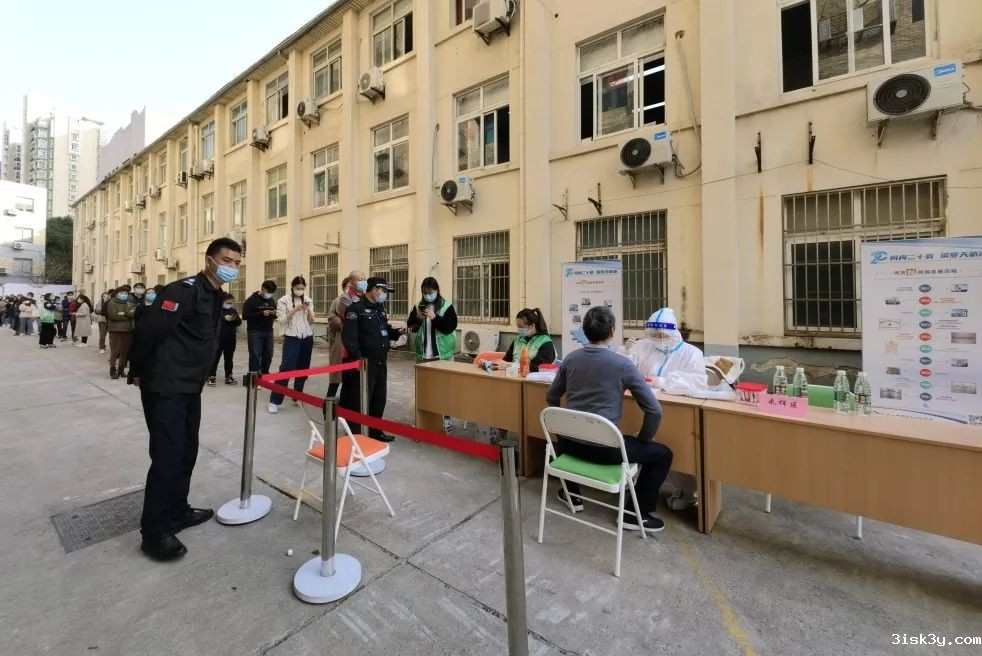 上海济辰节能科技有限公司沈岚在现场忙里忙外,为前来检测的人员进行引导和信息登记。“2020年疫情发生时,我就在菜场、社区当过志愿者,也算是有了一定的经验,所以今天就过来一起帮忙。”