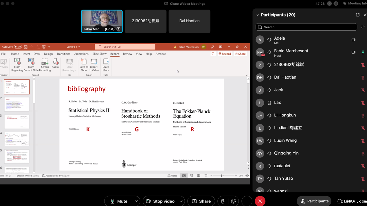 在抗击疫情的关键时刻,为有效解决学生因疫情无法正常进行科研学习的问题,增加与师生间的交流,物理科学与工程学院外籍教授法比奥·马切索尼(Fabio Marchesoni)坚持每周四下午三点半通过网络平台,在线为学院师生讲授随机过程基础及其应用的课程。